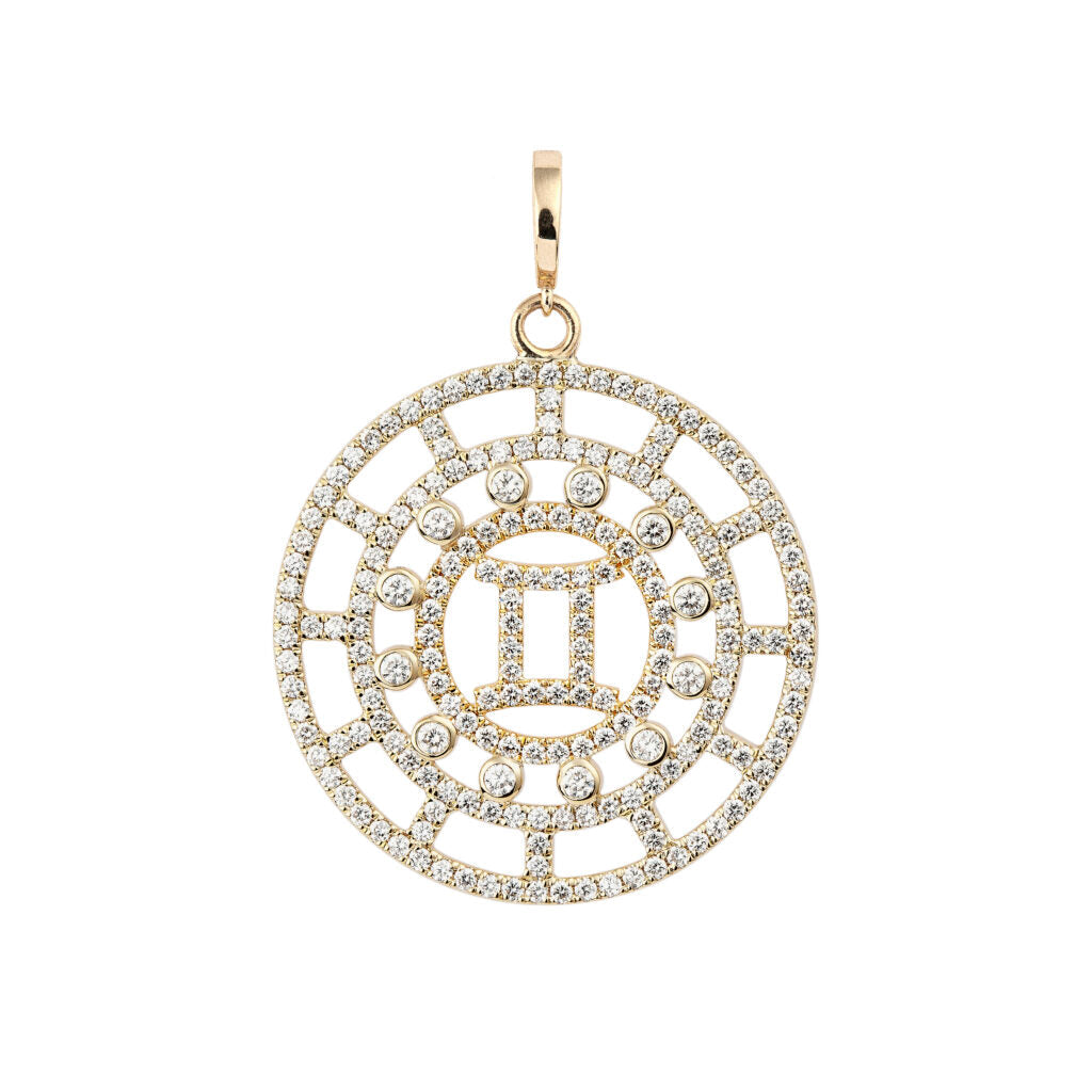 The Zodiac Pendant Gemini pavé in yellow or white gold and diamonds.