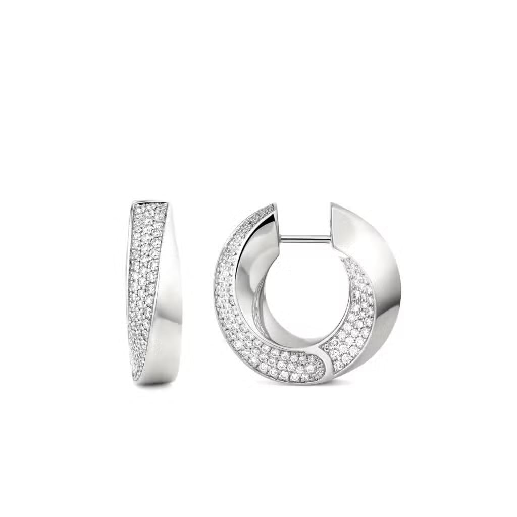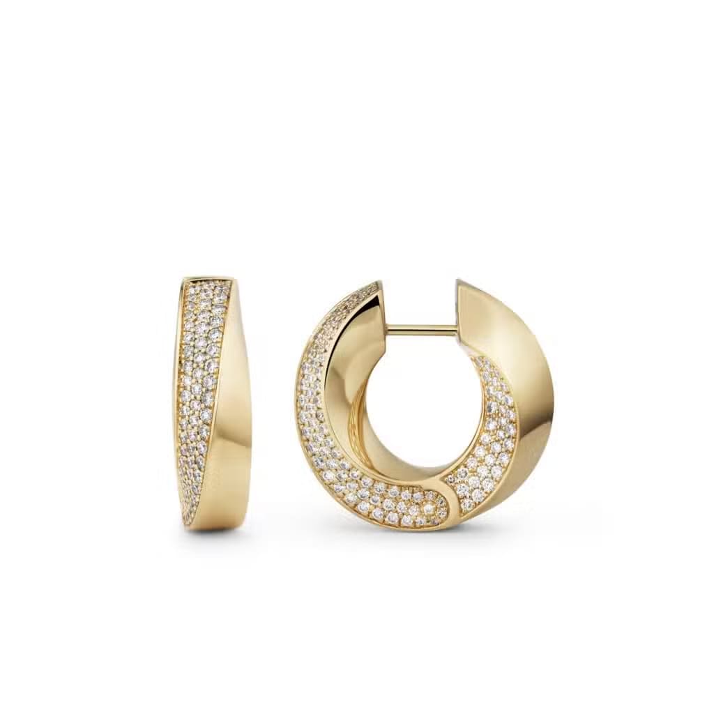 Aurea Spira Creoles, Big, in yellow or white gold and diamond pavé.