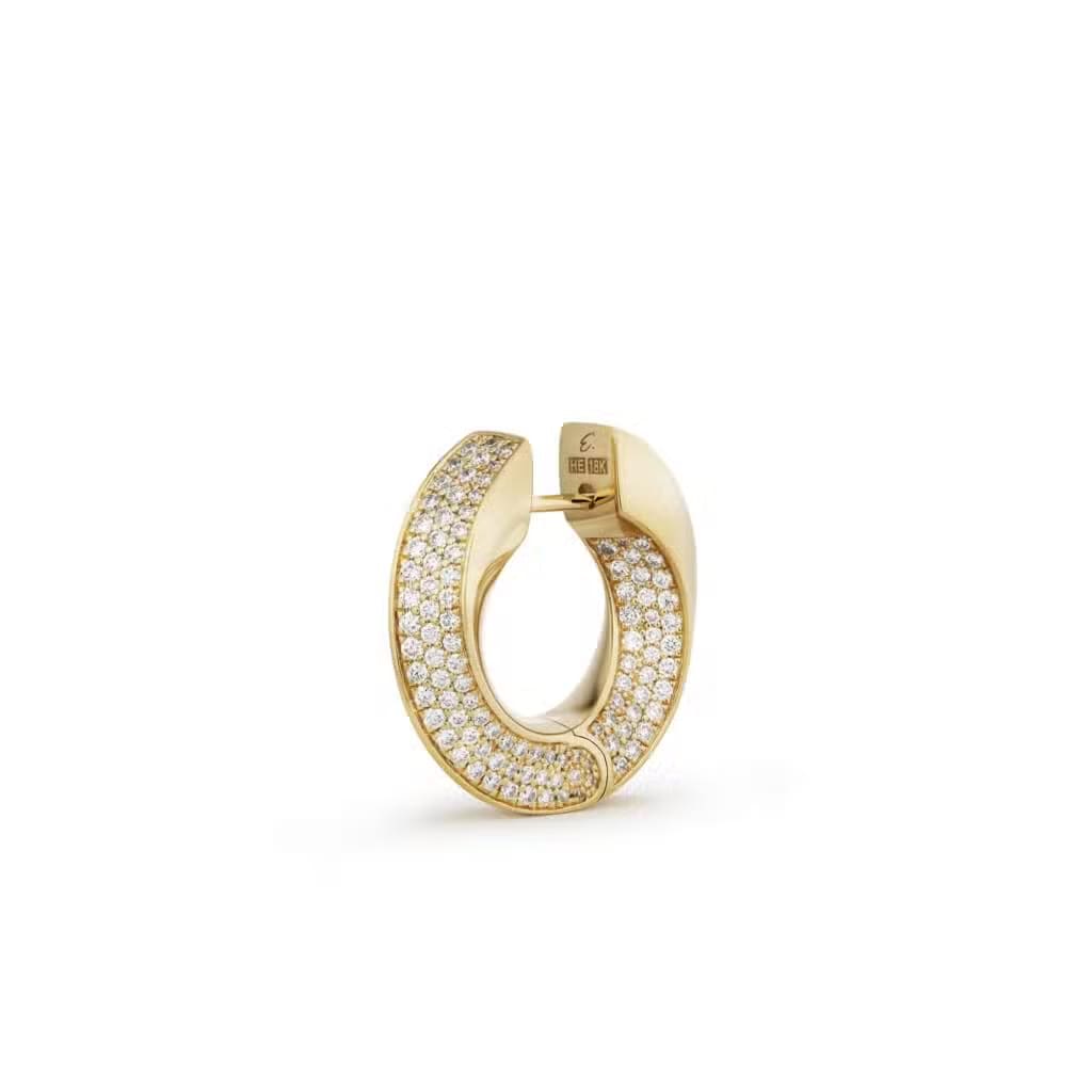 Aurea Spira Creoles, Big, is crafted in 18k yellow and white gold and 1.08 cts. diamond pavé.