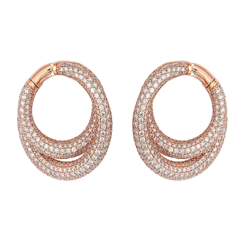 The Infinity Loop earrings are crafted in 18k yellow, white and rose gold and a total of 5.21 cts. / 10,43 cts pavé set (G/VS) diamonds.