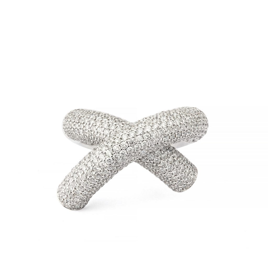 The Cross Loop ring, Big, full pavé, in yellow, white or rose gold and white diamonds.