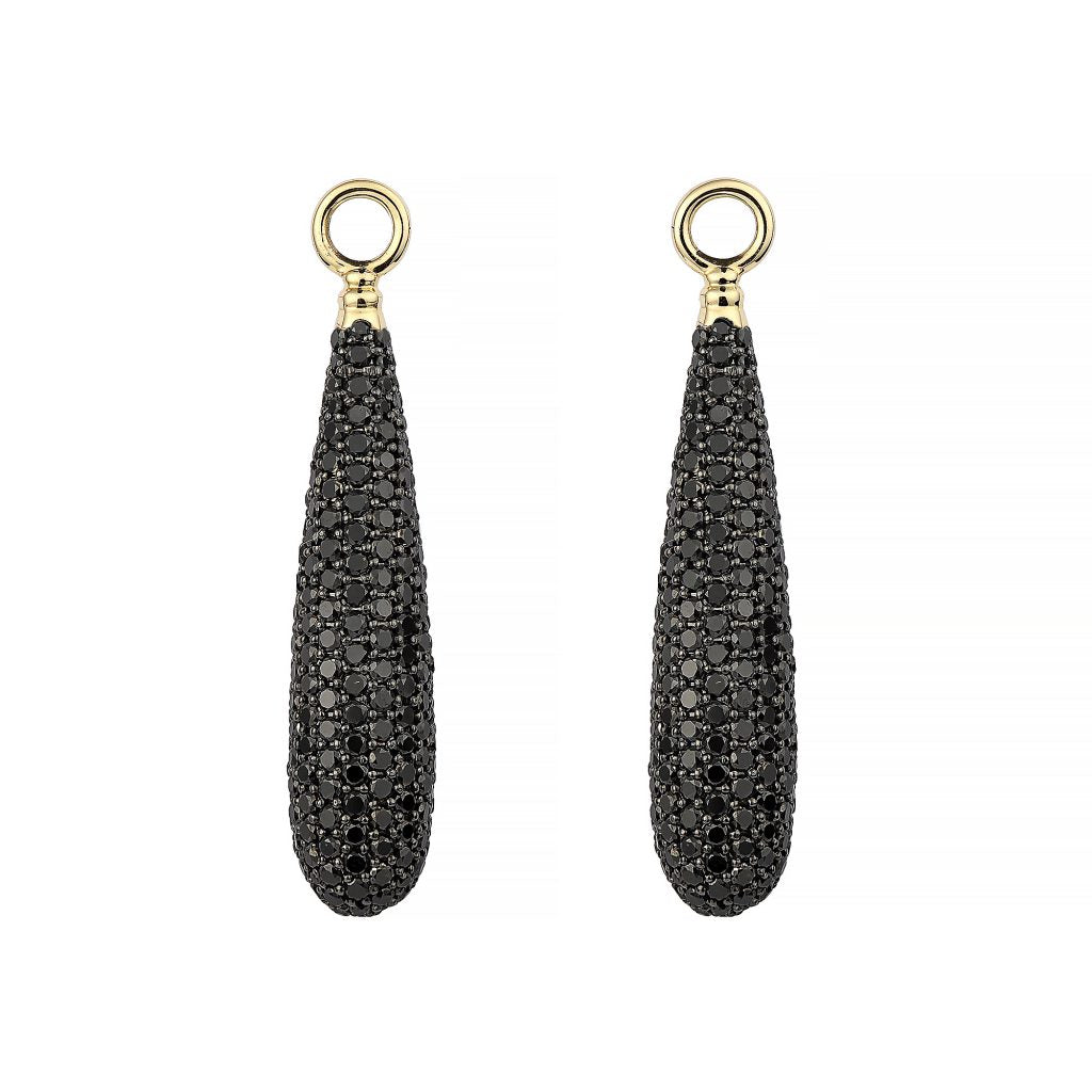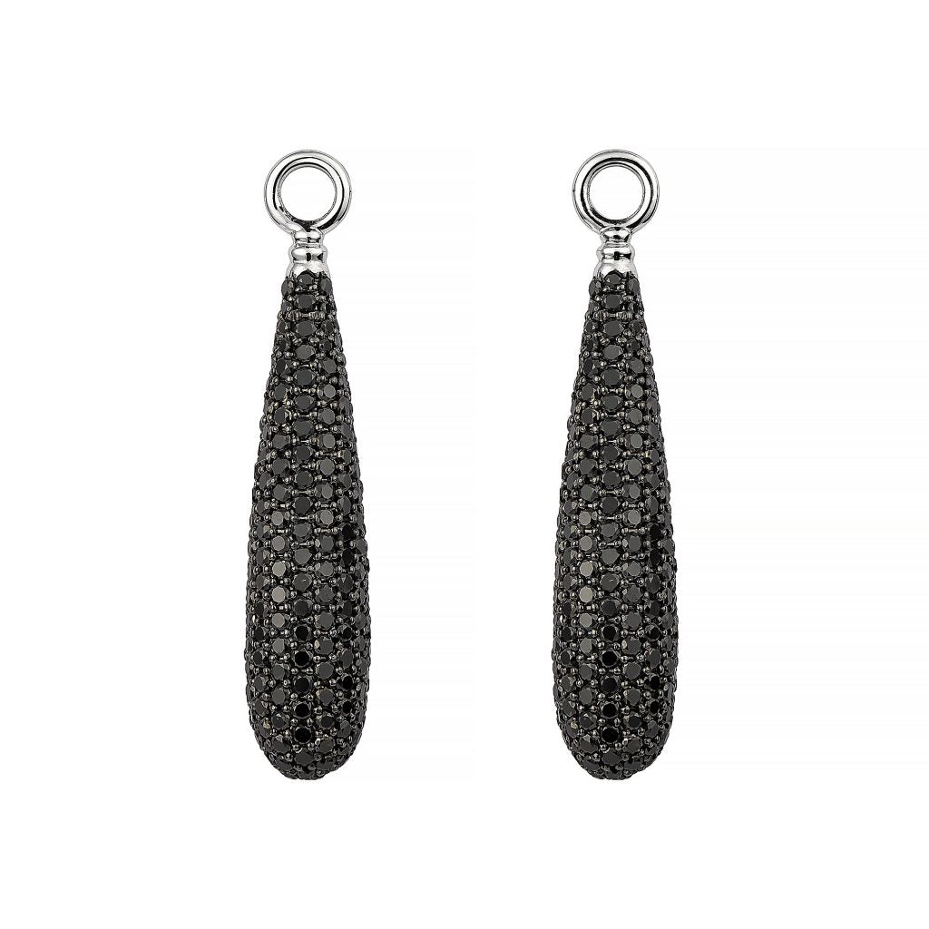 These Earring Attachments in black diamond pavé are crafted in 18k yellow, white or rose gold. They are used as attachments to our Classic Creoles and a variety of attachments in The Swedish Grace Collection. Black Diamond Drops are crafted in 18k white gold and set with 3.09 carats of black brilliant cut diamonds.