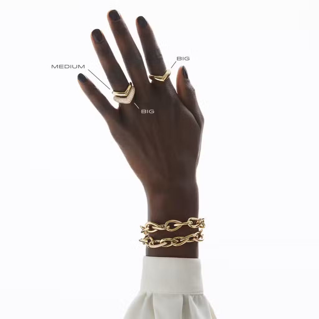 Anillo Drop Link, mediano, en oro amarillo, blanco o rosa.